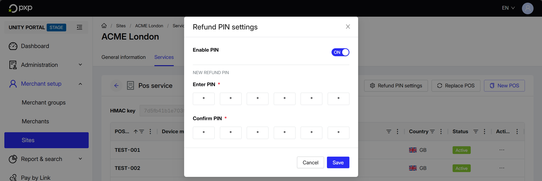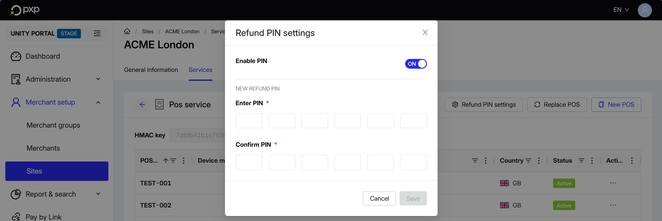 - In the top right, click Refund PIN settings. A modal opens.